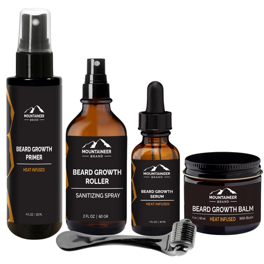This meticulously crafted kit contains a 4 oz Beard Growilth Primer, designed to stimulate your hair follicles and balance your skin's pH, creating an optimal environment for healthy beard growth. The Titanium Micro Needle Beard Growth Roller, a tool renowned for its ability to enhance blood circulation and release growth factors through micro-needling, works in synergy with theĀ 1 oz Beard Growth Serum, which delivers potent active ingredients directly to your hair follicles. TheĀ 2 oz Beard Growth Balm, infused with biotin, seals in nourishment and provides all-day protection and styling, while theĀ 2 oz Beard Growth Roller Sanitizing SprayĀ ensures your roller is clean and safe to use every time.