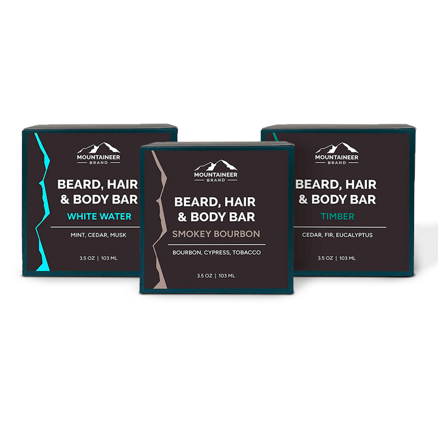 Our 3-pack bar soap set features the best-selling scents: Smokey Bourbon, Timber, and White Water. Made with natural, plant-based ingredients, these bars provide a deeply moisturizing, chemical-free clean that’s gentle on your skin. Perfect for men seeking long-lasting scent and a refreshing, natural approach to daily skincare, this set offers a superior, nourishing cleanse compared to ordinary soaps.