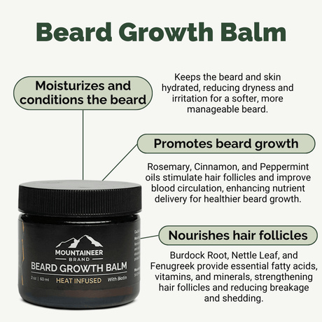 Beard Growth Balm - This Beard Growth Balm is is infused with biotin. Biotin supports keratin production, a key protein that forms the structure of hair. This balm seals in nourishing ingredients and moisture and offers all day protection and a great, styled look.