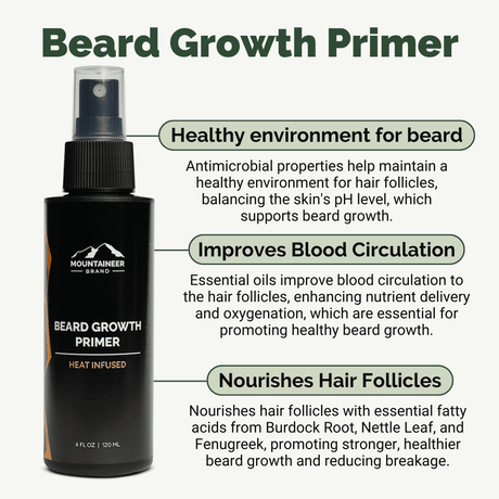 Beard Growth Primer - The ingredients in this toning primer go to work immediately to stimulate the hair follicles and get them primed and prepped while perfectly balancing pH. This primer naturally balances pH levels by using its slightly acidic properties to restore the skin's natural pH, creating an environment conductive to healthy beard growth.