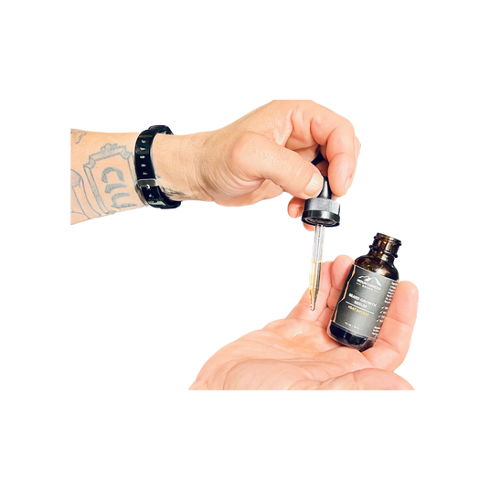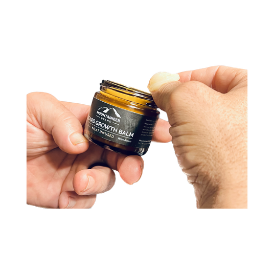 Apply a few drops of Mountaineer Brand Beard Growth Serum to your palms. Massage it thoroughly into the skin under your beard and distribute any leftover oil through your beard hairs. Follow with our Beard Growth Balm.